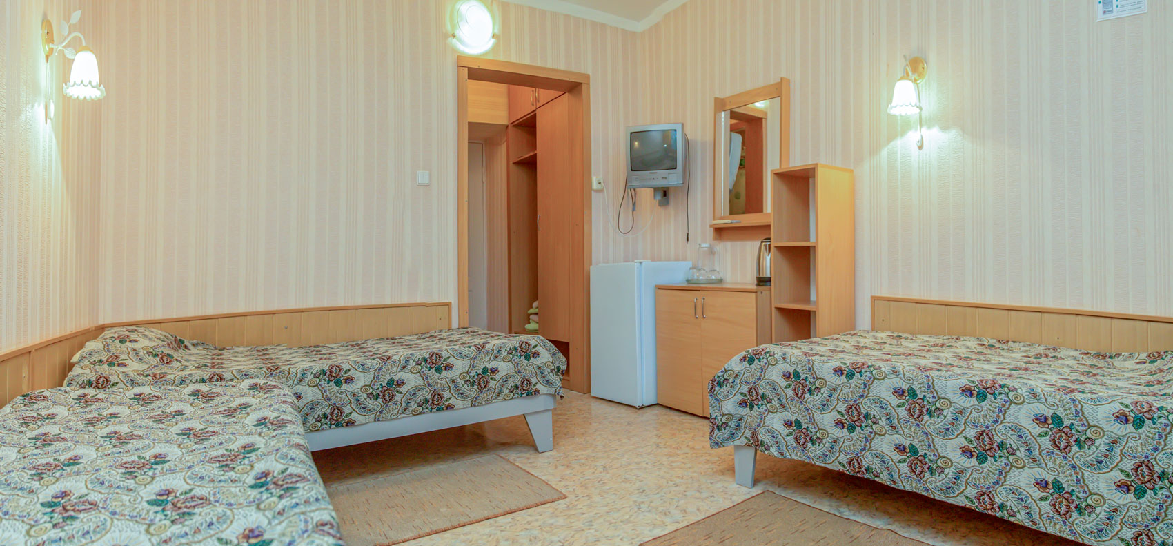 • Дети до 3 лет (включительно) размещаются бесплатно, без предоставления места, обязательна оплата коммунального сбора 150 руб/сутки, при желании предоставляется детская кроватка, аренда 100 руб/сутки.