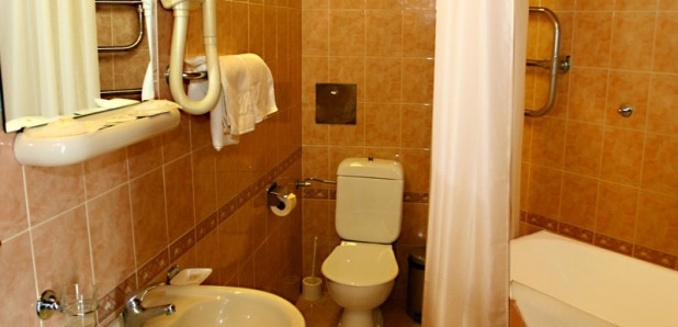 Санузел: ванная 1,7м или душевая кабина, умывальник, унитаз, фен, полотенце.
